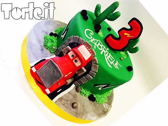 Mac Cars cake, torta a tema Cars con il simpatico cammion che trasporta saetta nelle sue avventure
